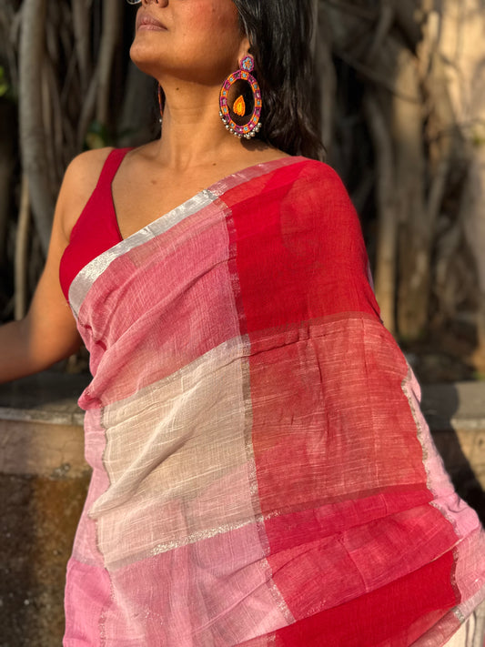 Gulaabi Linen Cotton Saree