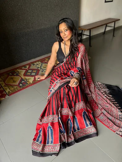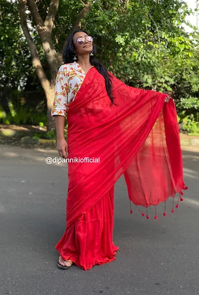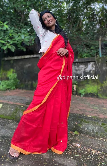Red Tikli mul saree