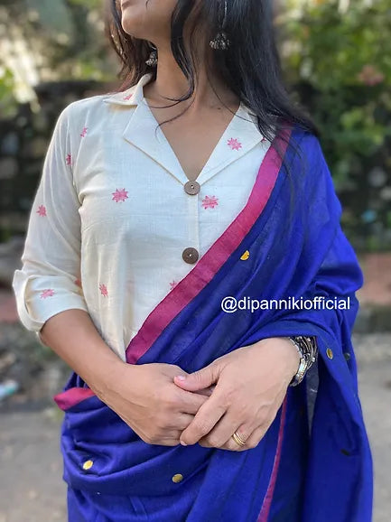 Sold outRoyal blue tikli mul saree