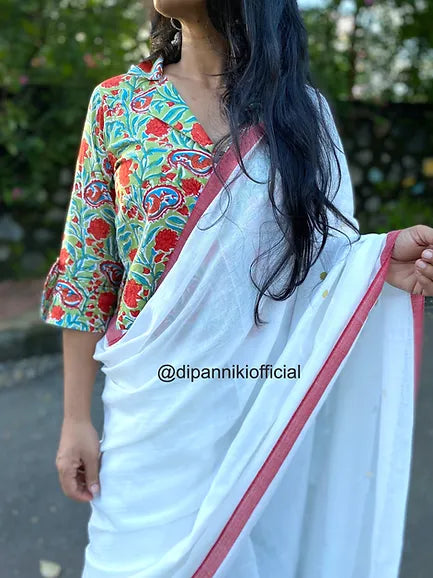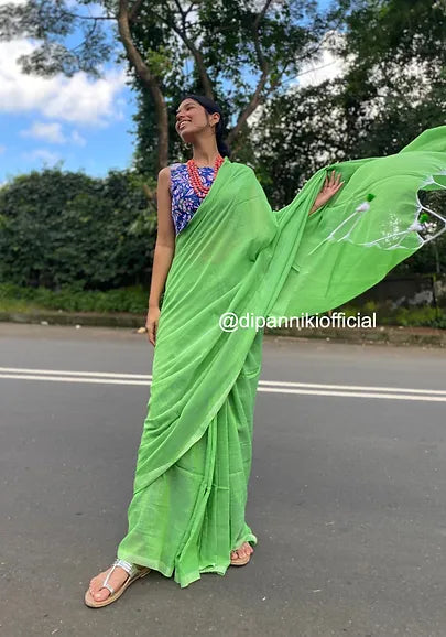 Green mul saree
