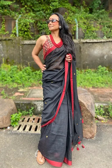 Black tikli mul saree