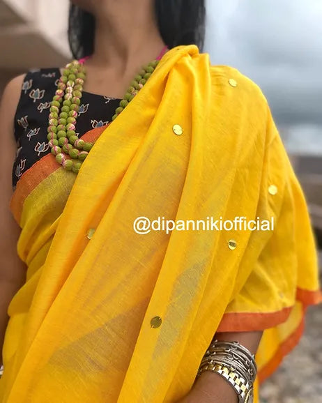 Orange yellow mul saree