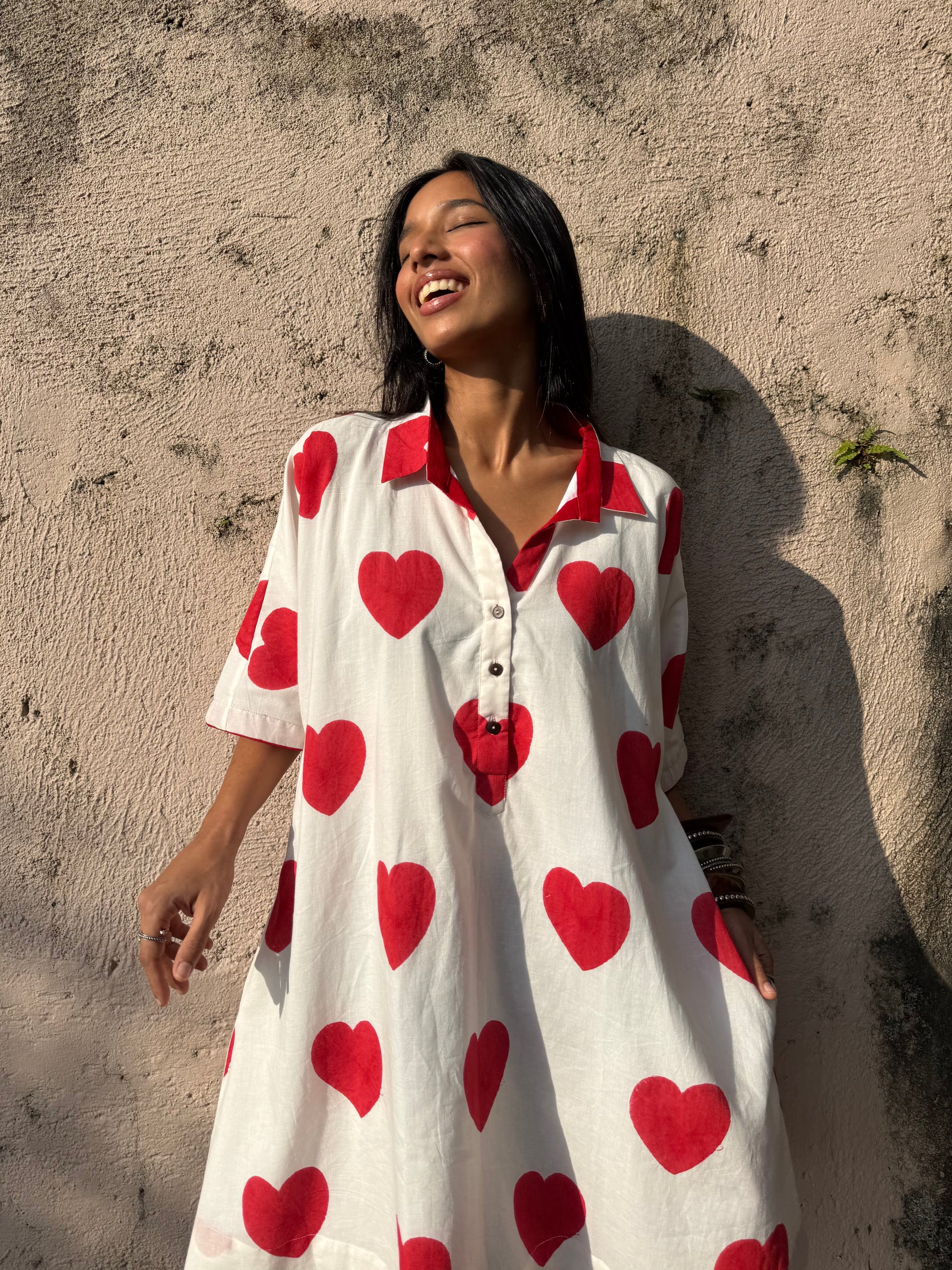 The Dil Se Dil Tak Dress is a classic short dress featuring a collared neckline and a semi button-down front in an easy, anti-fit silhouette. Thoughtfully lined for carefree styling, it’s crafted in 100% pure cotton with a soft 100% cotton lining — made for comfort and effortless charm.