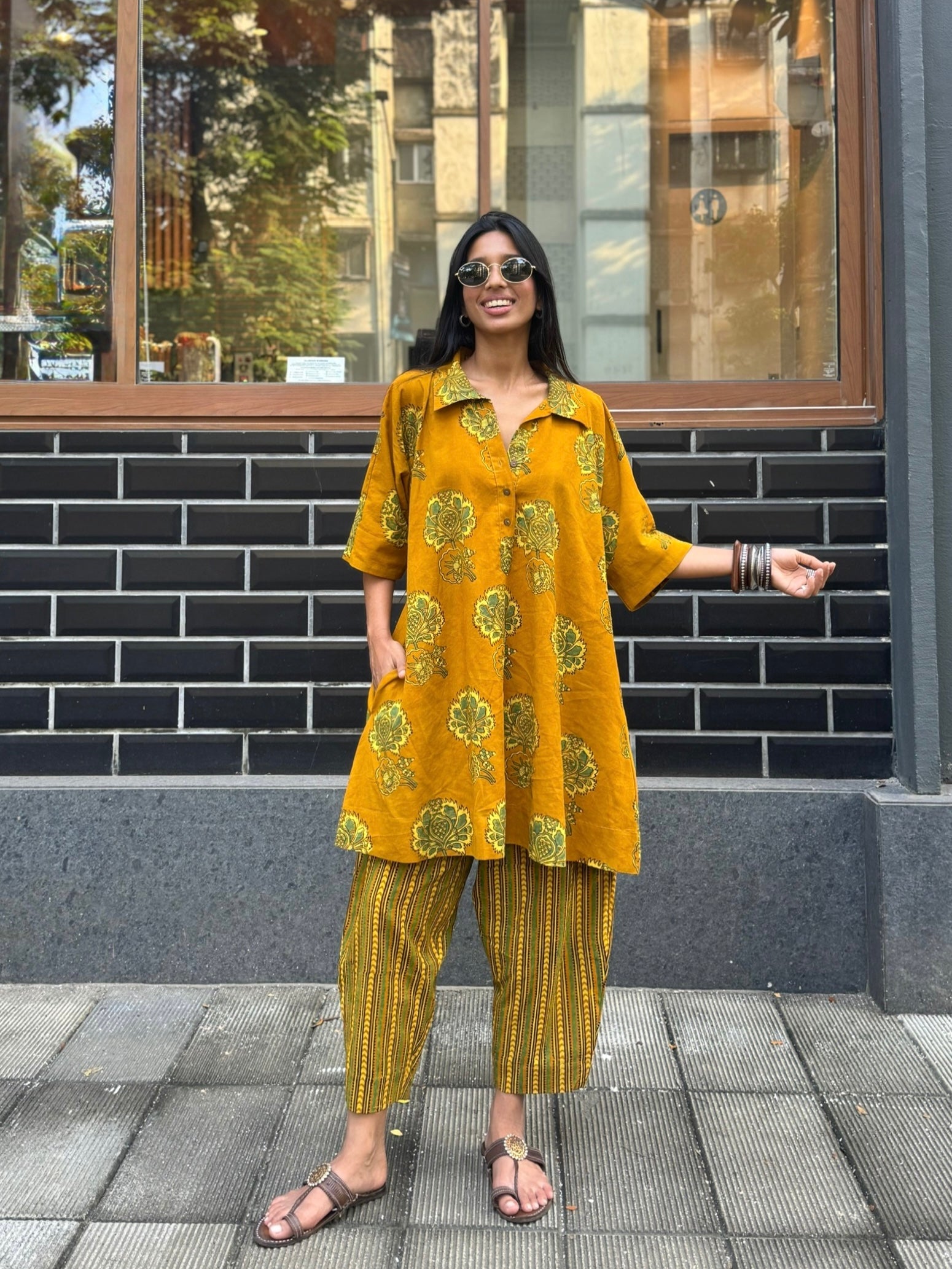 Turmeric Ajrakh Co-ord with Afghani Pants